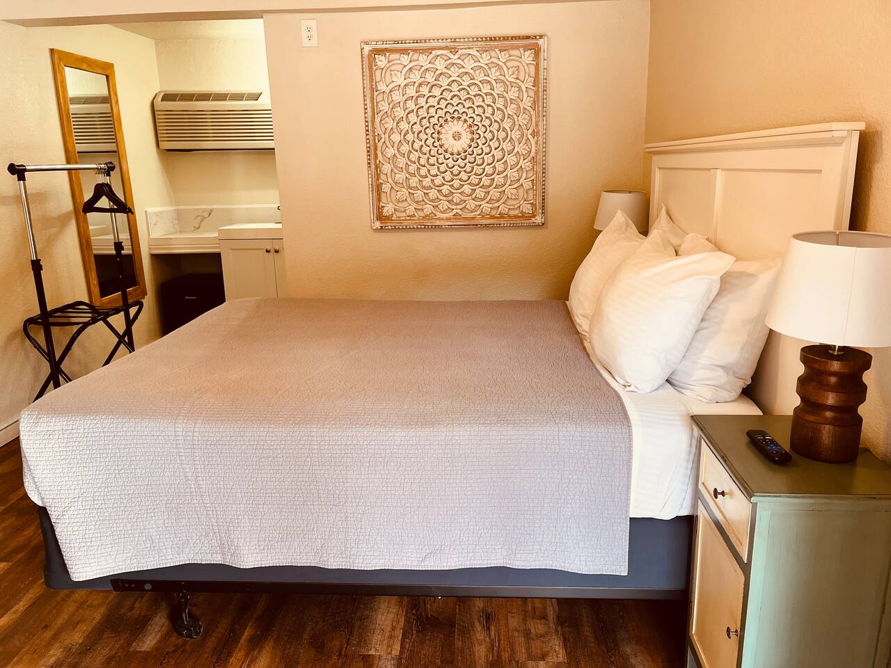 Come stay at the Fountain Creek Inn, the best value in the heart of Manitou Springs! ✔ Incredible location with great views and just a short walk down to heart of Manitou Springs and its shops, restaurants, bars, galleries ✔ Fully-renovated and professionally cleaned private queen room ✔ Professionally laundered + high-quality linens/towels ✔ Extremely comfortable queen bed ✔ A smart TV hooked up to fast WiFi ✔ Powerful heater / AC unit ✔ A Keurig coffee brewing machine + minifridge