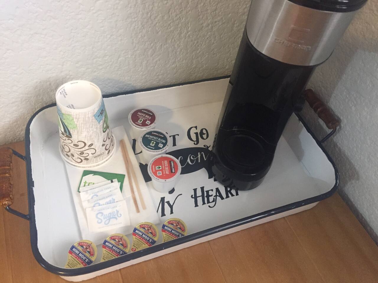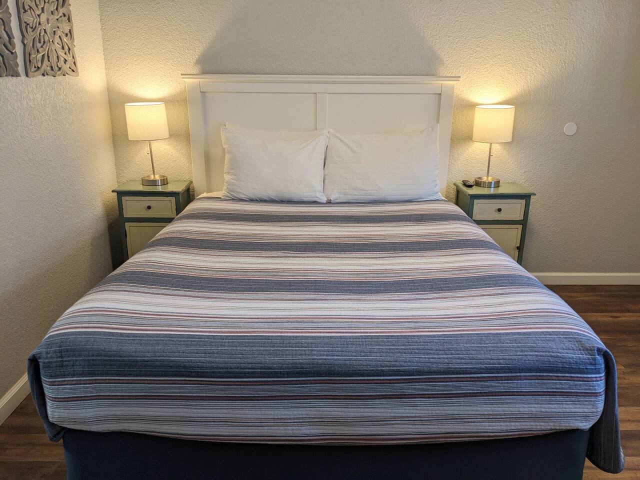 Our room #202 has recently (and lovingly) been fully renovated! We love the bright and clean vibe of our room and we hope that you'll find its design and aesthetic to your liking as well. You will definitely love the expansive and scenic views of the Rockies and the rolling foothills that surround Manitou Springs out your room's window and you'll also love being so close to downtown Manitou Springs; it's just a short walk to the heart of downtown or up to the trailhead of the famous Manitou Incline. Every room is cleaned by a company that specializes in vacation rental cleaning and we offer high quality coffee, sugar, shampoo, conditioner, soap for your enjoyment. All of our bed sheets, comforters, and towels are professionally laundered at one of Colorado Springs' best commercial laundromats.